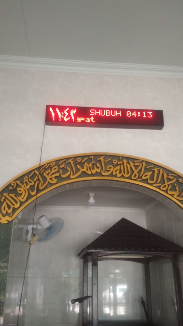Seperti yang sudah terlihat di beberapa tempat, baik di daerah Jawa Timur ataupun di luar Jawa Timur pada tempat – tempat peribadatan khusunsya untuk umat Islam banyak sekali Jadwal sholat digital ataupun Running text yang menghiasi di atas-atas tempat Imam ataupun di atas mimbar masjid atau mushola. Hal ini karena pada era digital ini demi suatu ketepatan waktu sholat serta agar ibadah lebih khususk lagi kita di wajibkan untuk menepatkan waktu datangnya sholat. Dengan hadirnya produk di gital di era digital ini sangat membantu kebutuhan masjid atau mushollaa untuk mendapatkan ketepatan jadwal datangnya waktu sholat.Jadwal sholat digital itu sendiri adalah suatu produk digital yang mana terdiri hardware serta software yang memprogram waktu datangnya sholat sesuai dengan waktu dari DEPAG setempat.Dengan adanya Jadwal sholat digital ini, maka para pengurus masjid tidak perlu bingung lagi untuk menyamakan ketepatan tepatnya datangnya waktu sholat atau saatnya adzan bagi para marbot masjid.