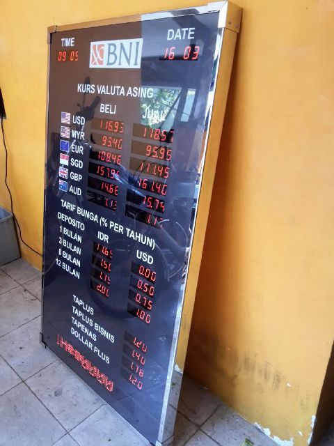 Ada juga pengembangan dari Display Running text Kediri yang lain yakni Kurs Mata uang yang banyak di gunakan di kalangan PerBANK an ataupun di Bursa -bursa Effect ini juga salah satu produk kami Microtec Digital Indonesia